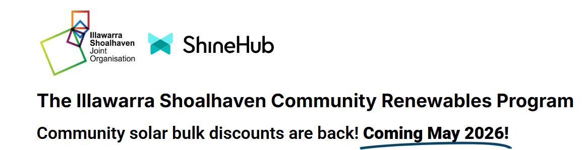 Our 4 local councils have worked together through the Illawarra Shoalhaven Joint Organisation (ISJO) to negotiate a bulk buy arrangement for rooftop solar and home batteries. The program is being delivered by Shinehub and is available to households across the Wollongong, Kiama, Shellharbour and Shoalhaven local government areas with the negotiated discount passed on to residents. The Program also provides direct access to available government rebates for solar, batteries and virtual power plant participation and finance options.